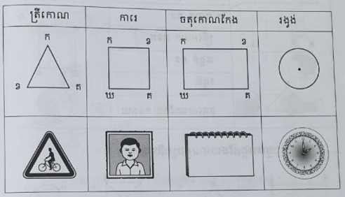 លំហាត់ 1: ចូរបំពេញឈ្មោះរូបធរណីមាត្រខាងក្រោមក្នុងប្រអប់ ដោយបំពេញអក្សរ ក ខ គ ឃ ង ច