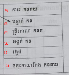 លំហាត់ 4: ចូរបំពេញឈ្មោះរូបធរណីមាត្រខាងក្រោមក្នុងប្រអប់ ដោយបំពេញអក្សរ ក ខ គ ឃ ង ច